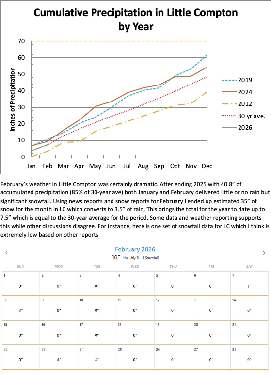 LITTLE COMPTON PRECIPITATION AND DROUGHT STATUS FOR FEBRUARY 2026